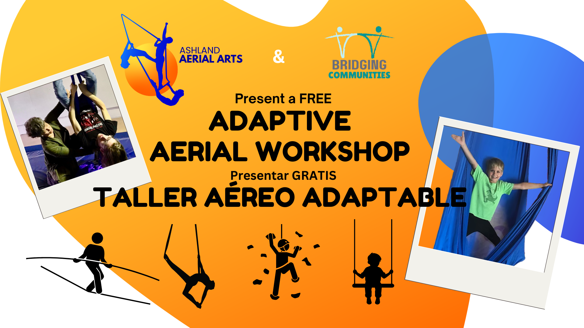 FeaturedAshland Aerial Arts 280 E Hersey St, #12, Ashland, OR, United StatesAdaptive Aerial Workshop Ashland Aerial Arts and Bridging Communities invite individuals from the disability community, ages 8 to 14, to join us for a fun and supportive introduction to aerial…